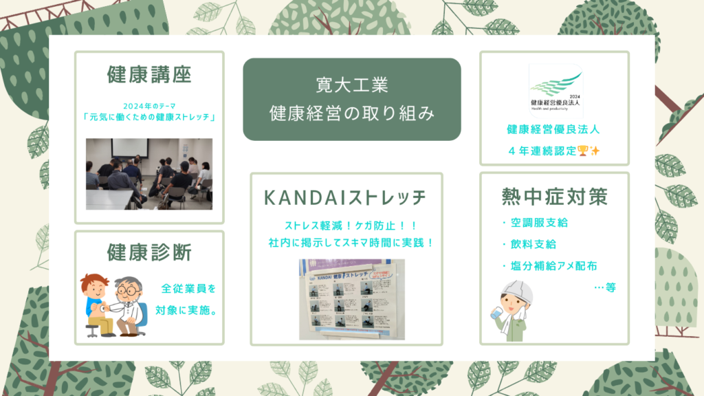 寛大工業では従業員の皆さまに健康的にお仕事していただけるように