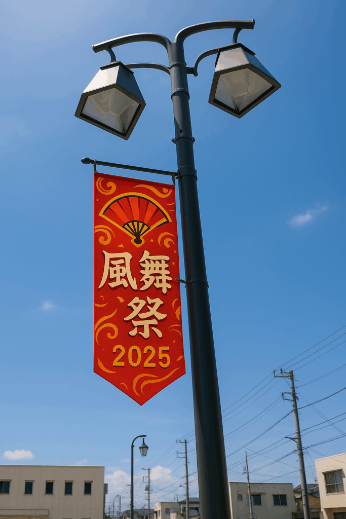 イベント時や季節の変わり目に、旗や装飾品を吊るすためのポールとしても利用されています。観光地や商業エリアでは、近くの装飾が景観を華やかにする一助となっております。