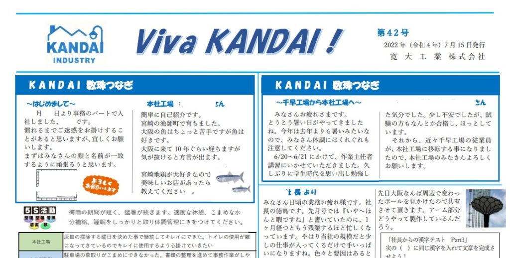 社内新聞は、初刊から3年を過ぎ今月で第42号になっています。