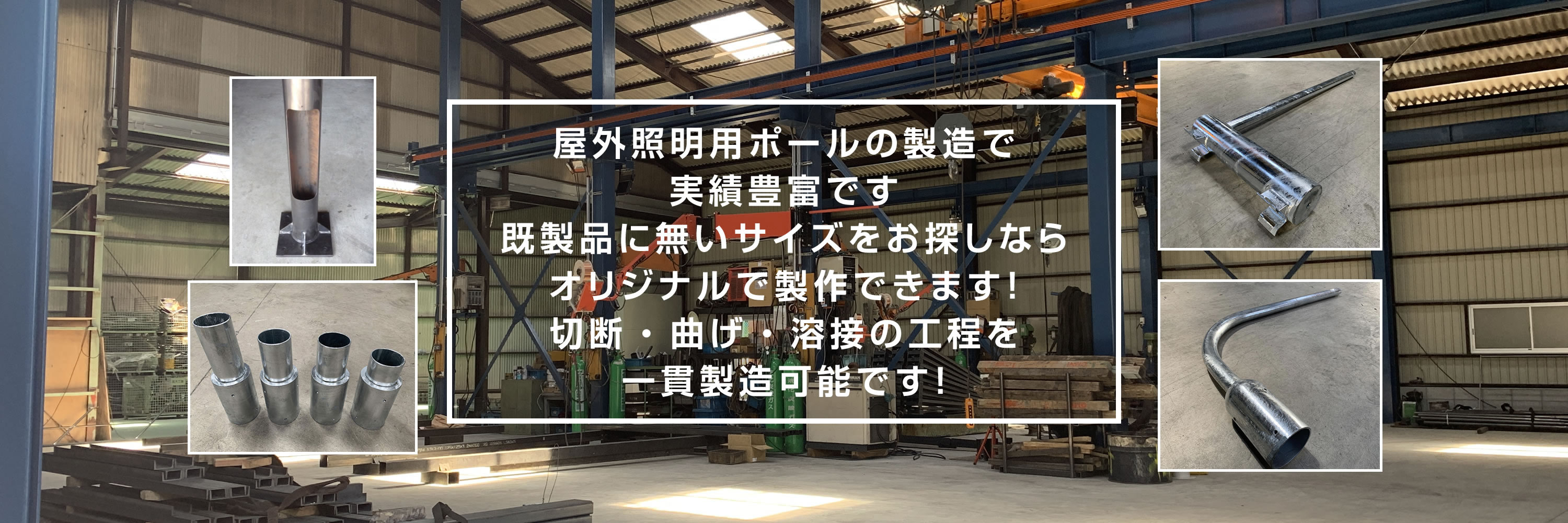 平成17年に創業し、主に道路・公園・駐車場・工場等の屋外用照明ポールを製造しています。