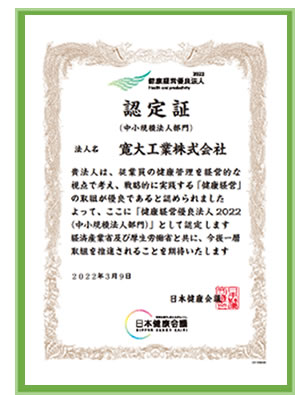 2021年度から健康経営優良法人認定をいただいており、社員の健康をサポートし働きやすい環境を整えています。